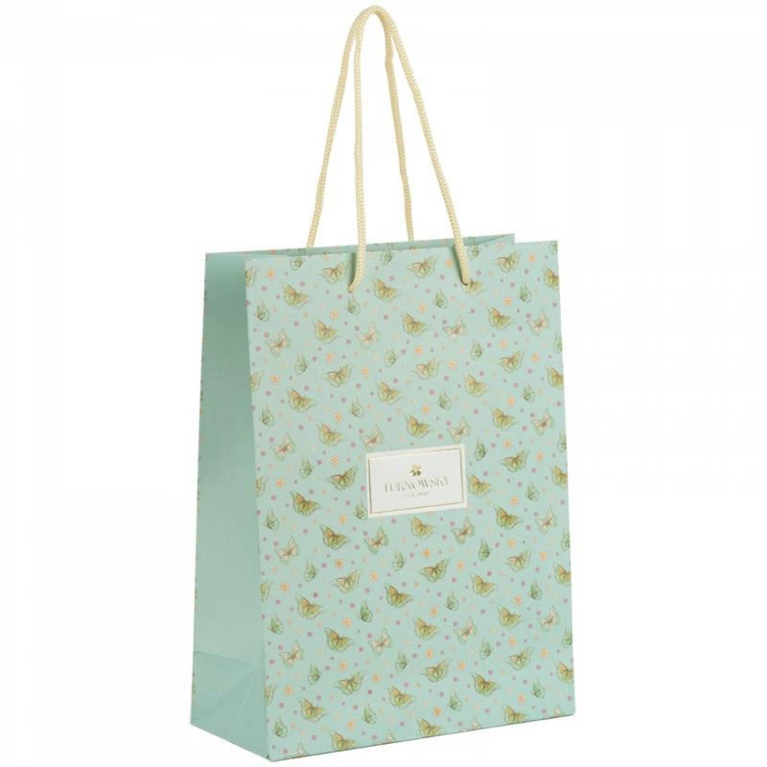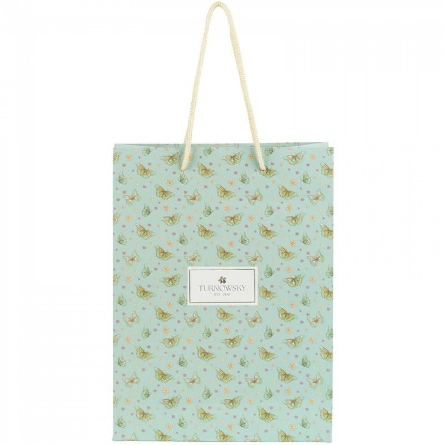 Ручки з ніжної тасьми, які гармонійно поєднуються з кольоровою гамою дизайну, стильно доповнюють декор та зручні для перенесення. Трендова матова поверхня, повнокольоровий друк надають виробу особливого шарму.