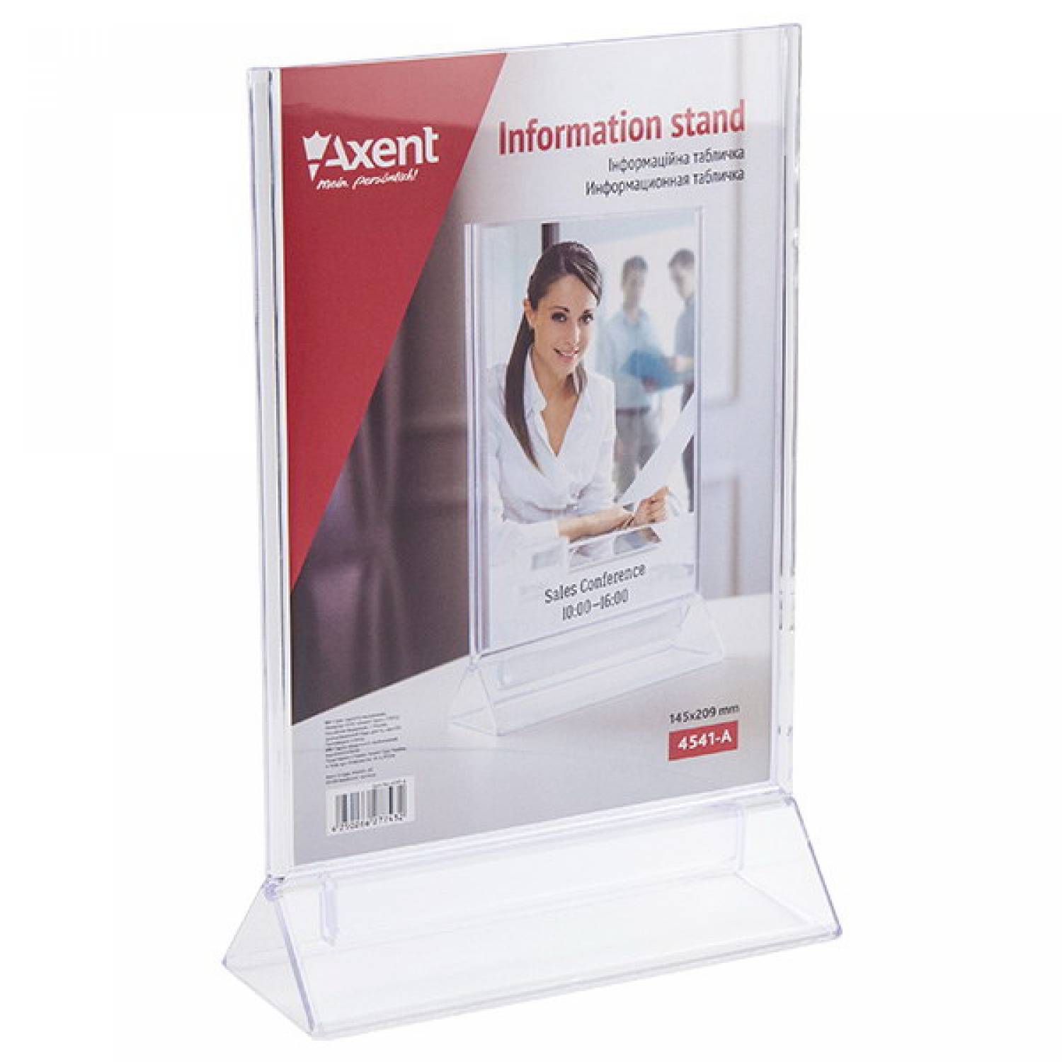 Табличка інформаційна двостороння Axent виготовлена з кришталево прозорого пластику (полістиролу), який не порушує передачу кольору і чіткість зображень.